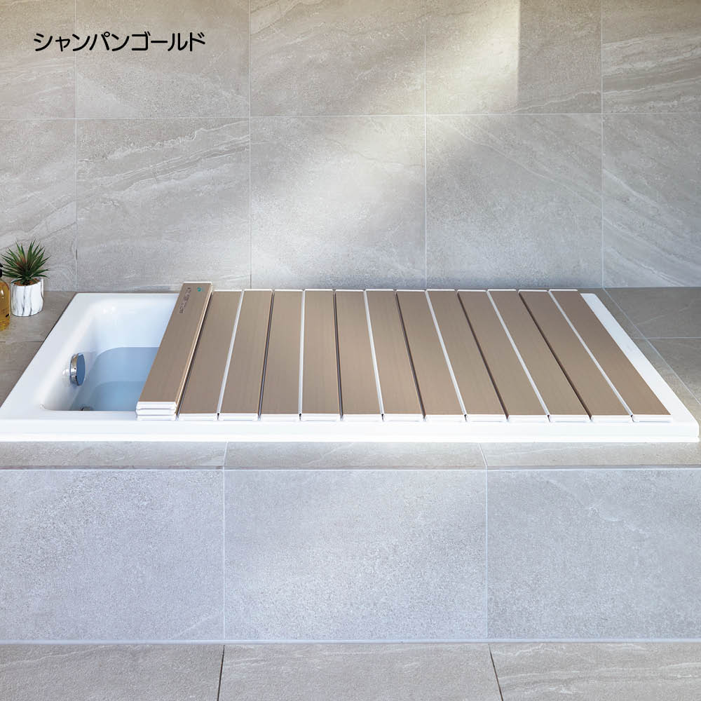 SIAA(抗菌製品技術協議会)の安全性と抗菌・防かび性の基準をクリアした、清潔さが長持ちする風呂ふた。シャンパンゴールド色はグレー~ベージュ系のバスルームにコーディネートしやすいカラーです。