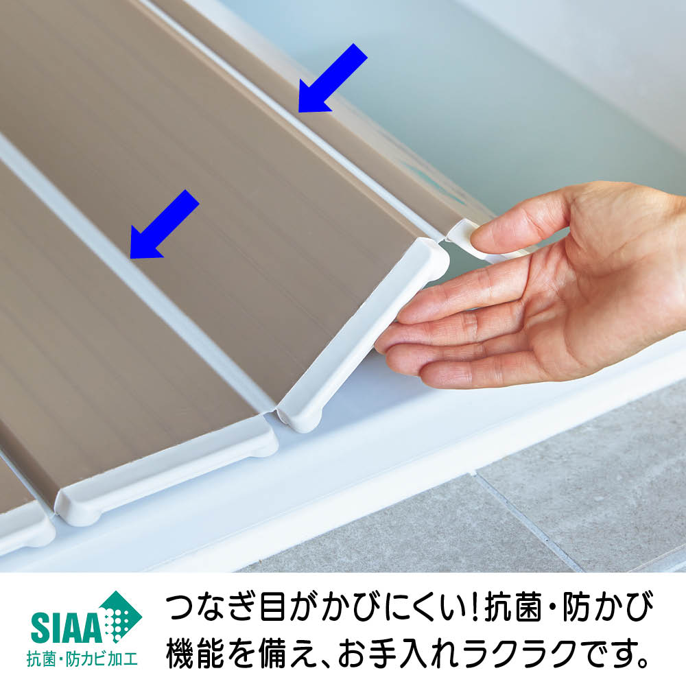 凸凹の多いシャッター式の風呂フタは、水が溜まりやすい端がかびてしまいがち。本商品なら抗菌・防かび仕様なのでキレイが長持ちします。