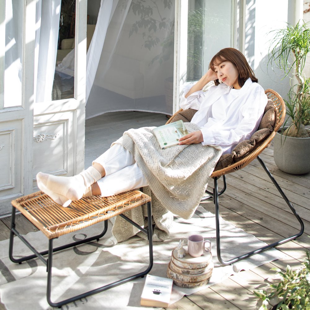 ポピーチェア オットマン付き ガーデンチェア ベンチ ガーデンファニチャー G87215