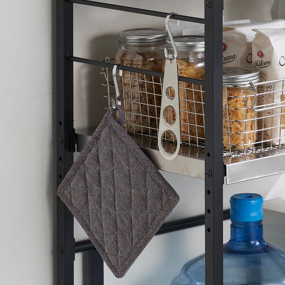 使用イメージ 調理器具や食品ストックの収納ラックとしても活躍。 ※写真は別売りの棚付きタイプ幅70cm~幅120cmです。