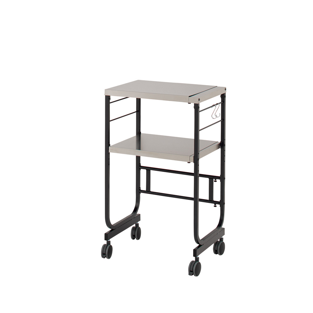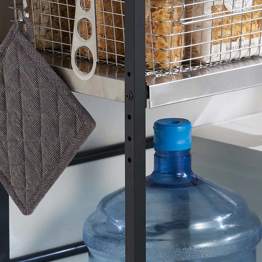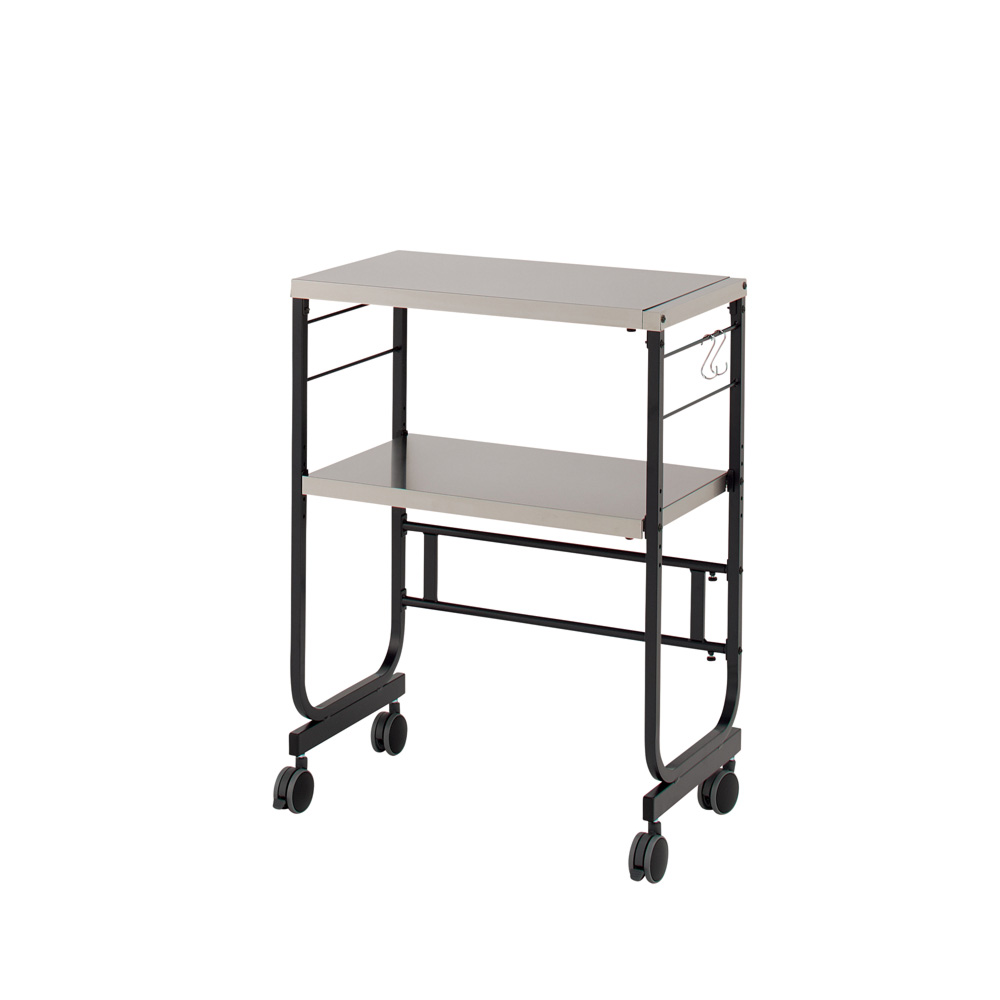 ■素材:天板・棚板…ステンレス、本体フレーム…スチール(粉体塗装)、S字フック(2個付き)…スチール(クロムメッキ)、キャスター…ポリプロピレン