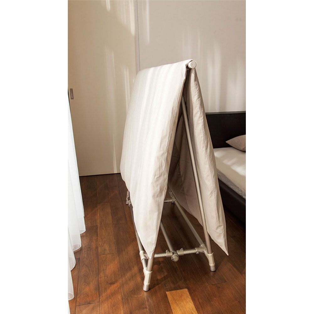 室内のわずかなスペースにも置けるので、布団を畳まず掛けておく使い方も。