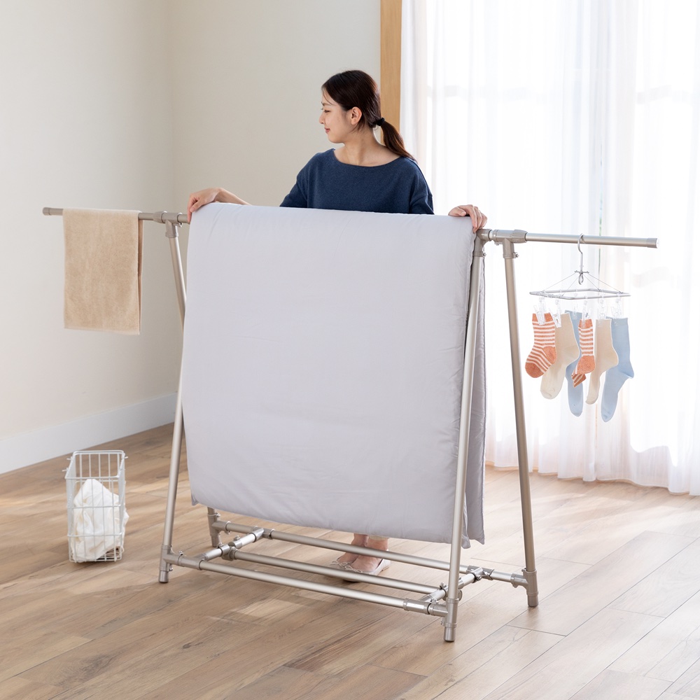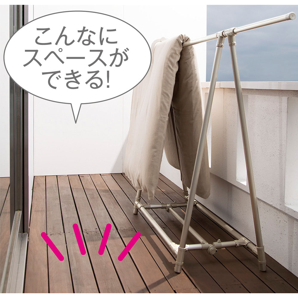 狭い場所でも最大限にスペースを有効活用して布団が干せる!A型物干しのロングセラーです。