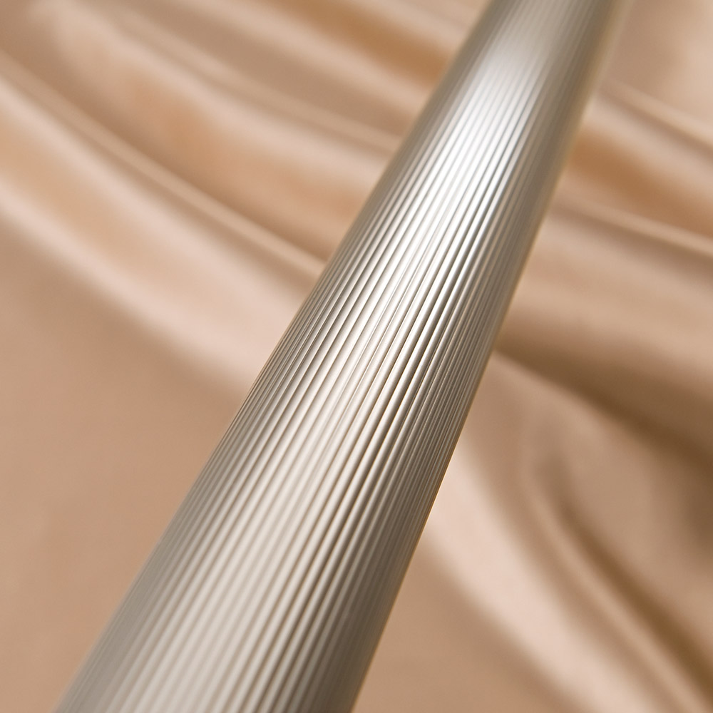 表面に凹凸のある縞状のローレット加工を施すことで、強度を高め、滑りにくい仕様に。