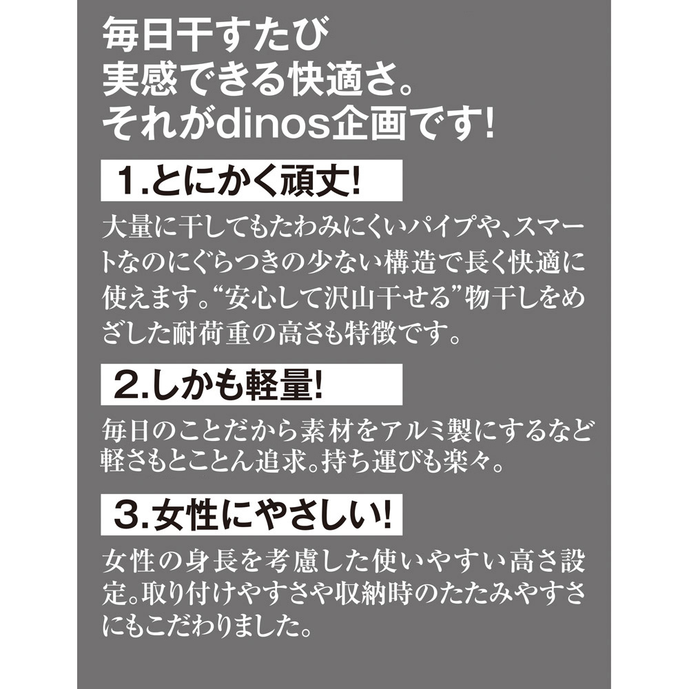 ・女性や高齢者にも干しやすいように、高さ約120cmの設計。