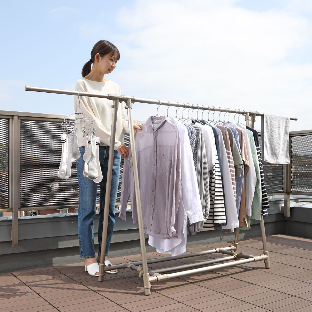 耐荷重は約15kg!一度にたくさんの洗濯物を干せます。