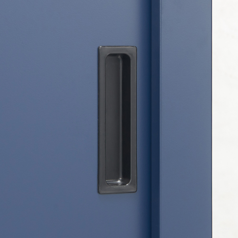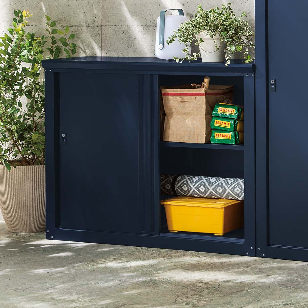 【日本製】オールネイビー引き戸物置 薄型ロータイプ 物置 633567