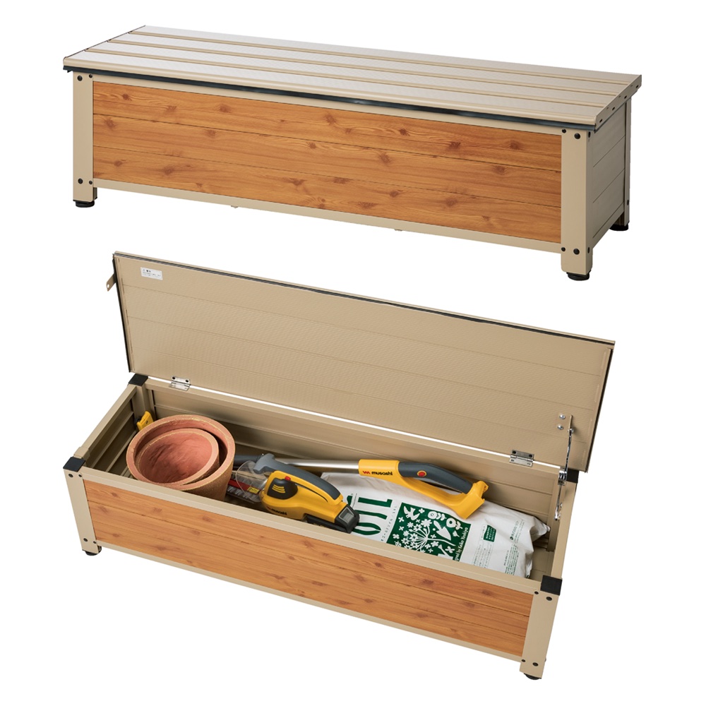 ◆出しっぱなしの屋外用品片づけられ、今まで以上に広いスペースを確保できます。◆内寸(約)幅106×奥行30.5×高さ24cmの収納力。