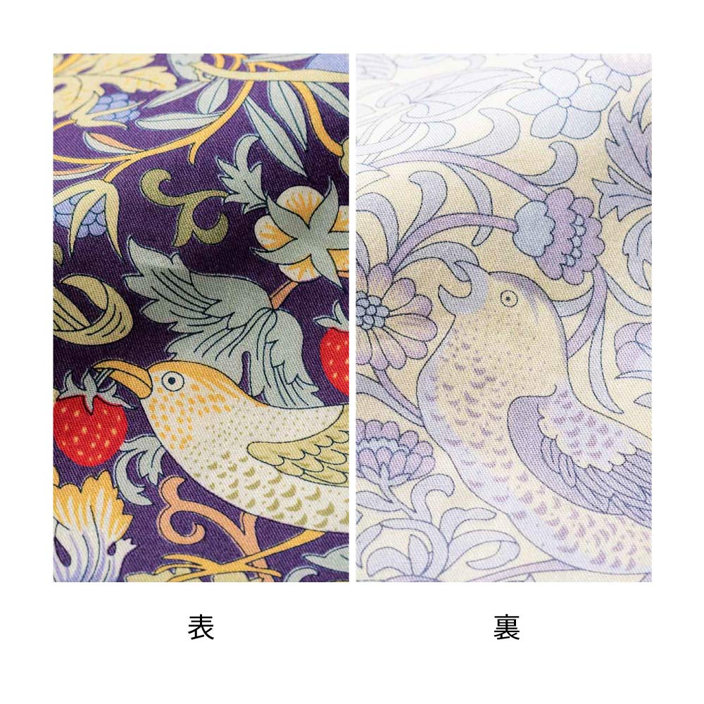 イギリスを代表するテキスタイルデザイナー、ウィリアム・モリスのデザインの中でも大人気のいちご泥棒柄をシックなカラー&デザインで表現。寝室をまるでアートのように美しく彩る枕カバーです。なめらかで肌ざわりの良い、綿100%の上質なツイル生地。季節を問わず気持ちよくお使いいただけます。手前から(イ)ピンク系(裏)、(ア)ネイビー系(裏)、(イ)ピンク系(表)、(ア)ネイビー系(表)