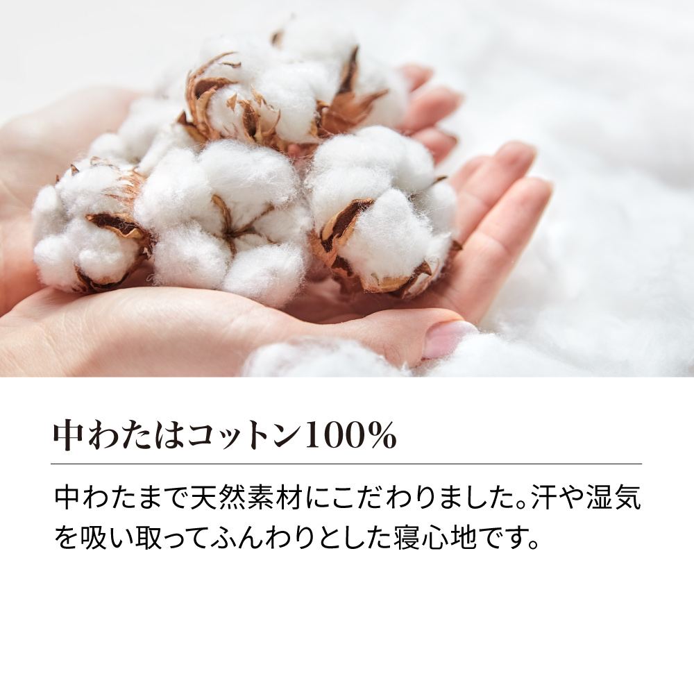 麻わた入り製品はドライクリーニング指定が多い中、中わたに圧縮加工を施した本品はご自宅の洗濯機で洗えます。