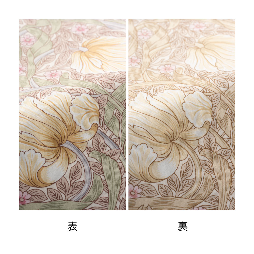 イギリスを代表するテキスタイルデザイナー、ウィリアム・モリスによる可憐なピンパーネル柄の掛け布団カバーです。上品な可愛らしさ漂う色柄で、寝室を癒しの空間に。なめらかで肌ざわりの良い綿100%の上質なサテン生地で、季節を問わず気持ちよくお使いいただけます。(ア)ベージュ系 ※シリーズコーディネート例。お届けは掛け布団カバーです。