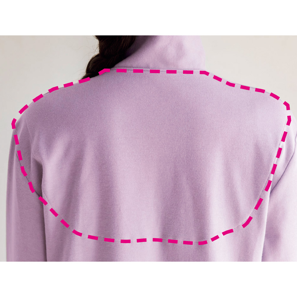 首元、手首、足首の大切なあっためポイント3首。衿を立てると首回り、顔回りまであたたか。手首足首はカフス仕様で冷気が入りにくい仕様に。またひざ部分と背中部分は生地を2重にして、温かさをUP商品画像の説明