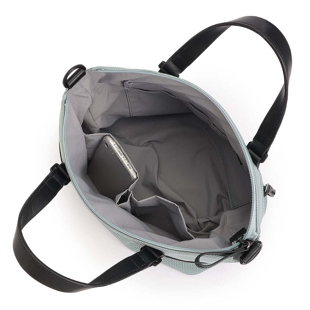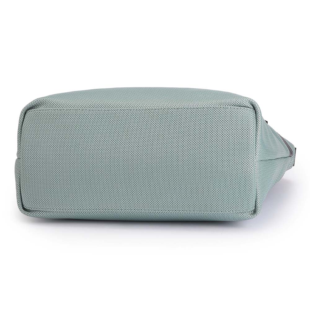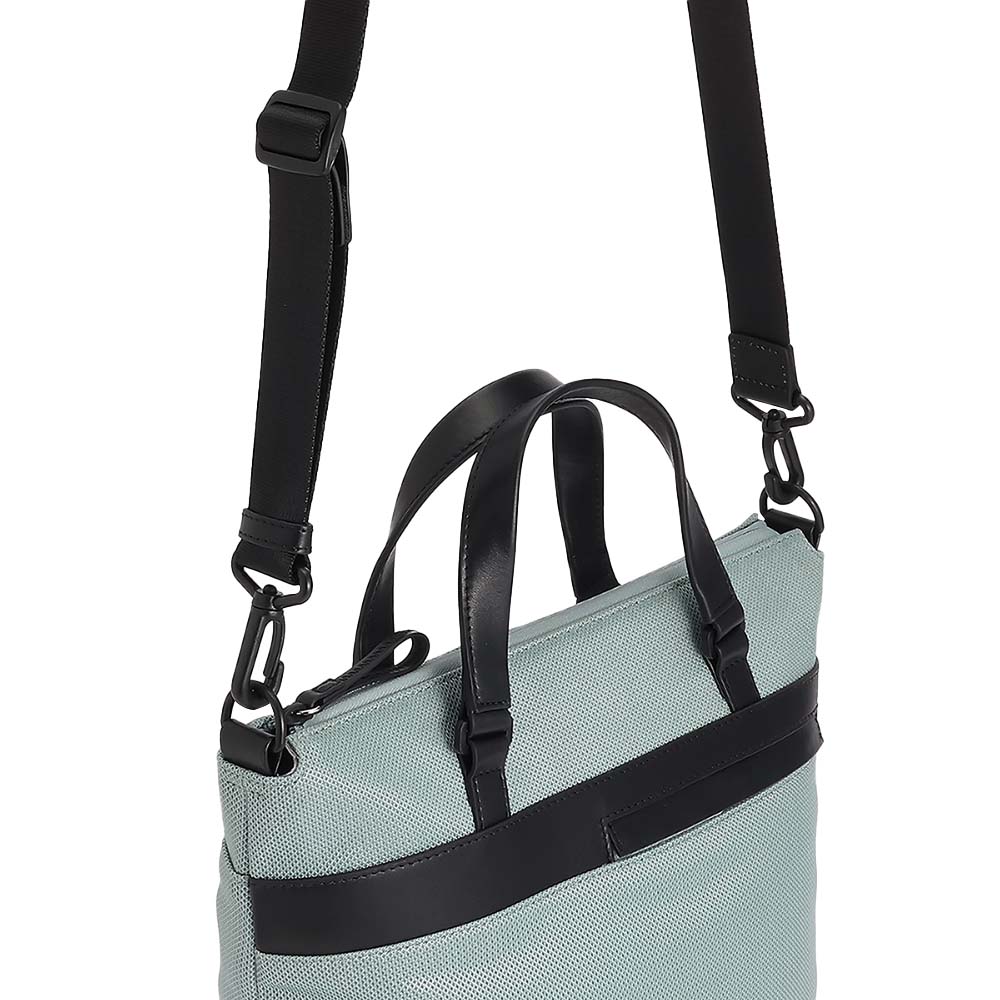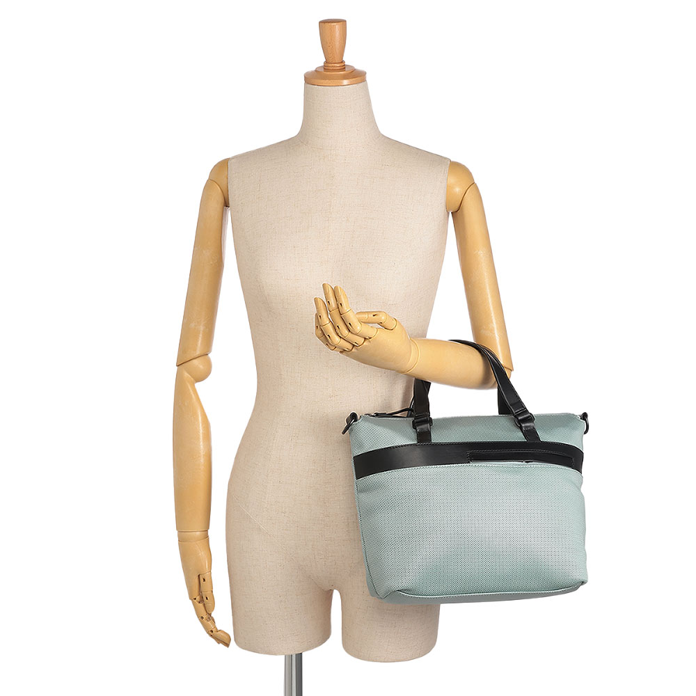 アクティブな日にはショルダーバッグをセレクト。メッシュ調のポリエステル生地を使用し、ラグジュアリーな光沢感を演出。取り外し可能のショルダーストラップつきです。シンプルなデザインながら、ファスナーデザインとレザーがアクセント。どんなシーンにも合わせやすく、収納力に優れた2WAYバッグです。