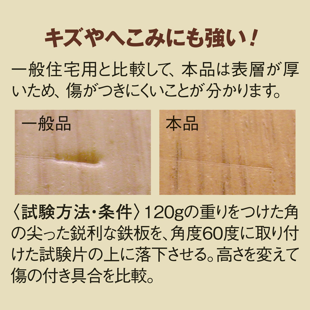 木目調の柄なので、フローリングの上でも違和感なく敷け、傷やへこみに強いので、床を傷から守ります。