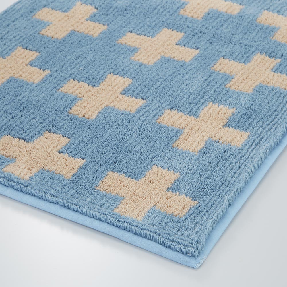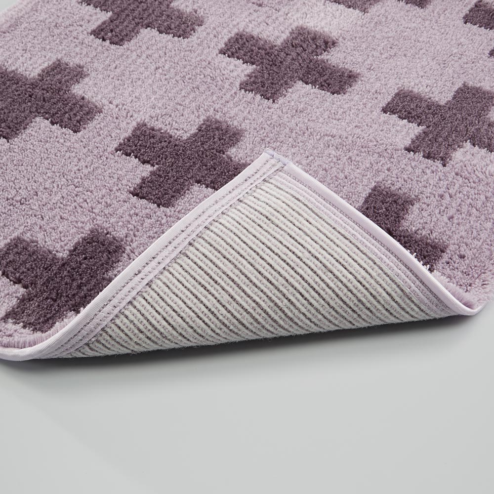 シンプルモダンなクロスの柄をデザインし、清潔感漂うキッチンスペースにぴったりとはまる素敵なキッチンマットです。毛足約5~10mm・生地の全厚18mmとボリューム感がありへたりにくく、おしゃれでふかふか心地いいのがポイントです。マットの裏には、すべりにくくするための加工を施しているのでずれることなく快適にお使いいただけます。抗菌防臭機能で衛生面も安心