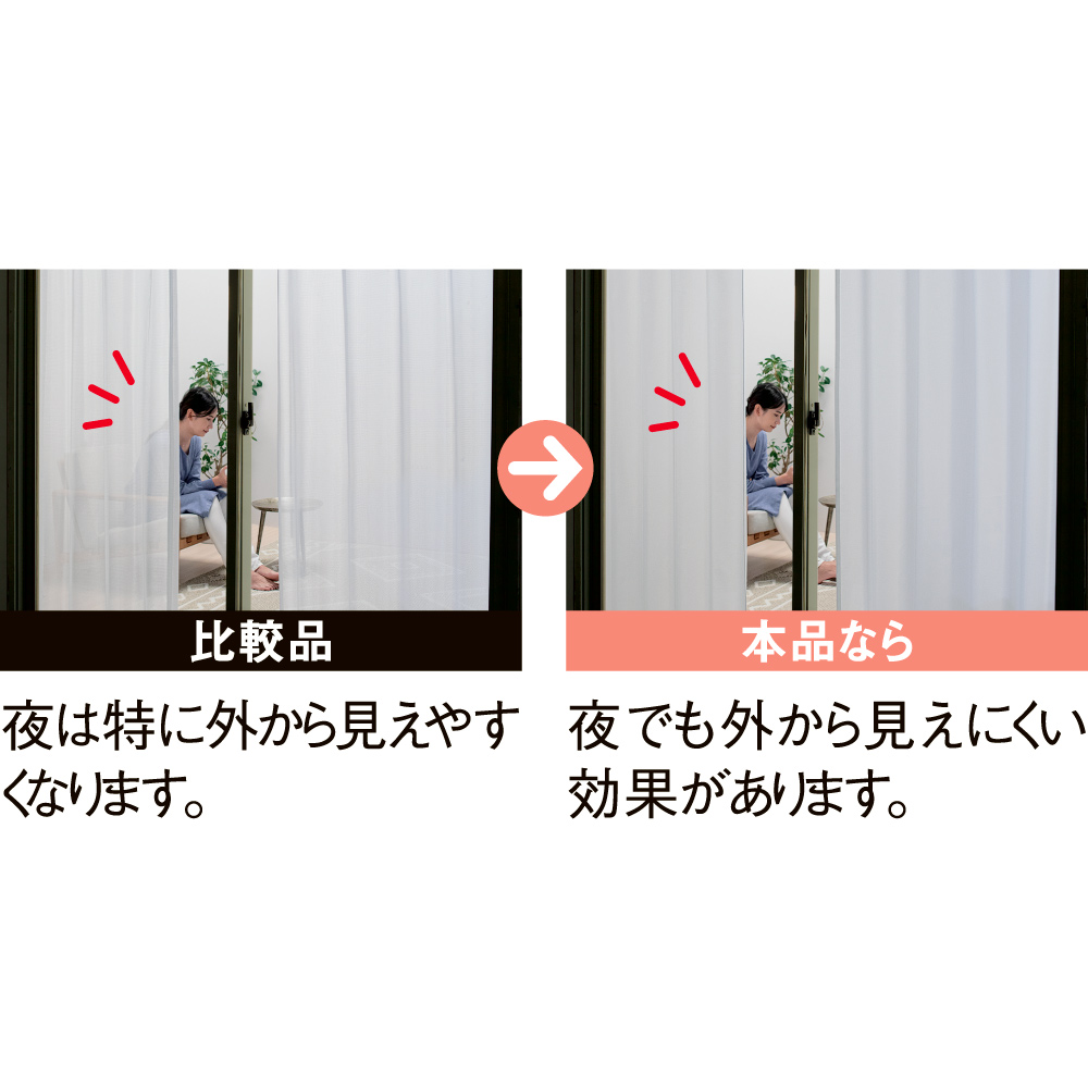 昼でも夜でも見えにくく、プライバシーを守ります。 特殊な断面を持つウェーブロン(R)糸が、光の乱反射と光を屈折させるレンズのダブル効果を発揮。外からの視線をしっかりカットします。