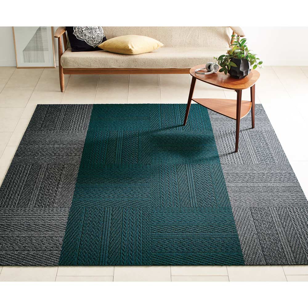 ピーコックグリーン(8枚)+グレー(8枚) 色の組み合わせで、自由なイメージでデザインラグ風にも。