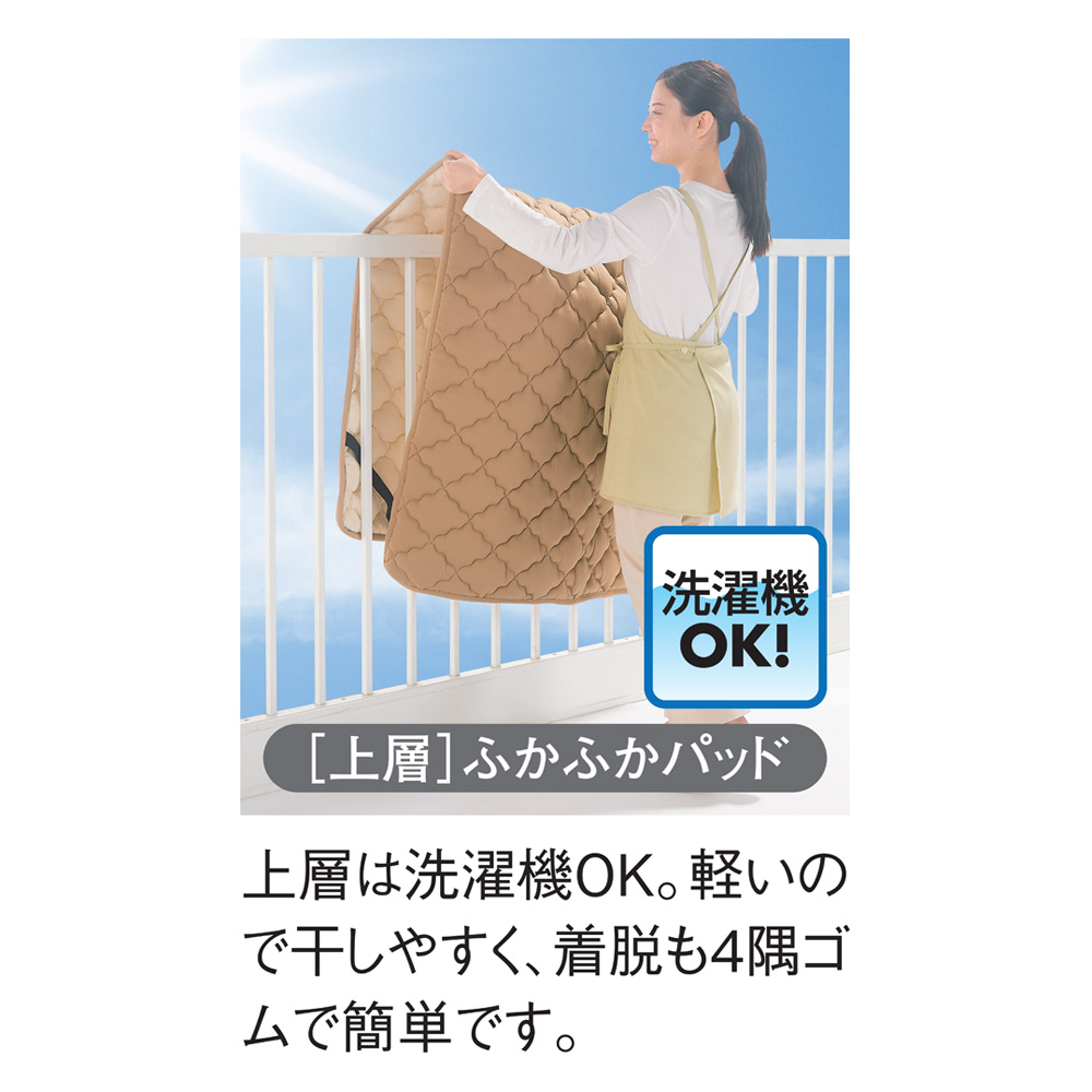 4隅ゴムで取り外しラクラク!ぜひ、「下層マットレス」とご一緒にお使いください!