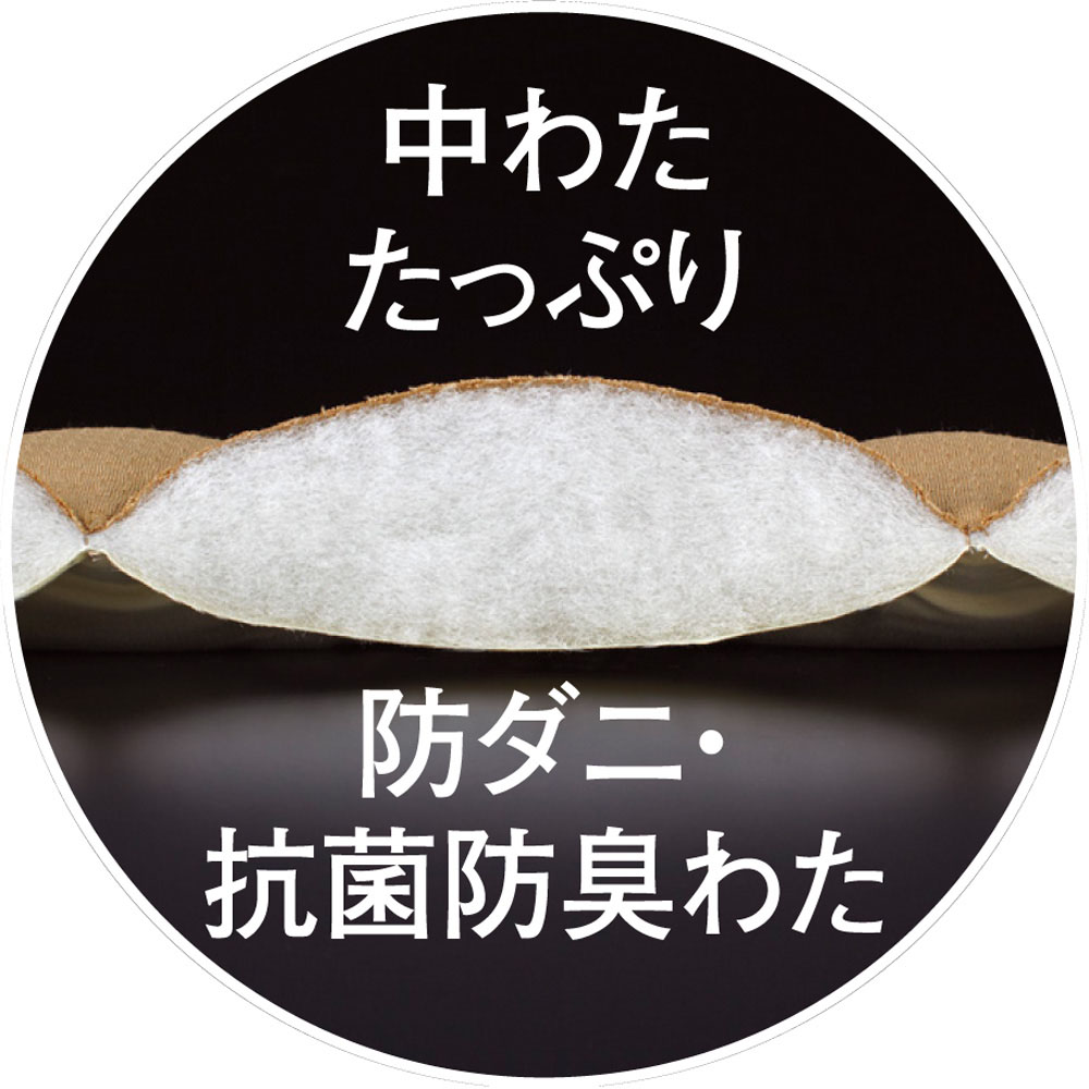中わたには、防ダニ・抗菌防臭効果のある、テイジン・マイティトップ2を使用。洗濯機で丸洗いOKなので、清潔・衛生的です。