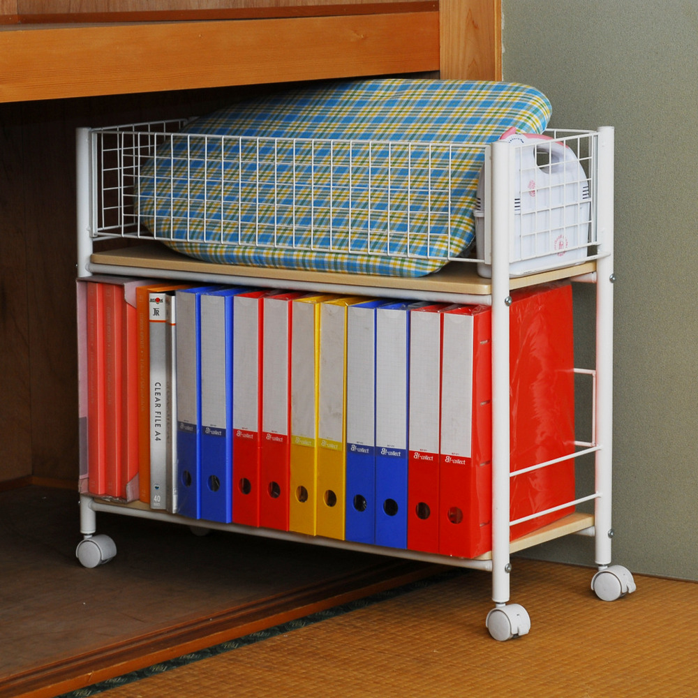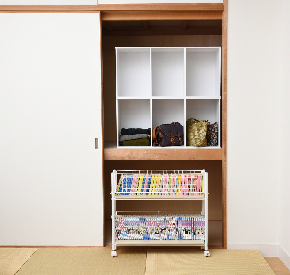 ●押し入れ下段はかがまないと物が取り出せないので、キャスター付きのラックがおすすめ。