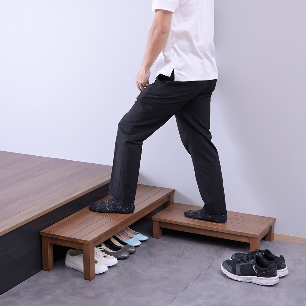 ●お子様や年配の方には負担のかかる玄関の上がり框。●その上り下りの負担を軽減してくれる天然木の玄関踏み台。