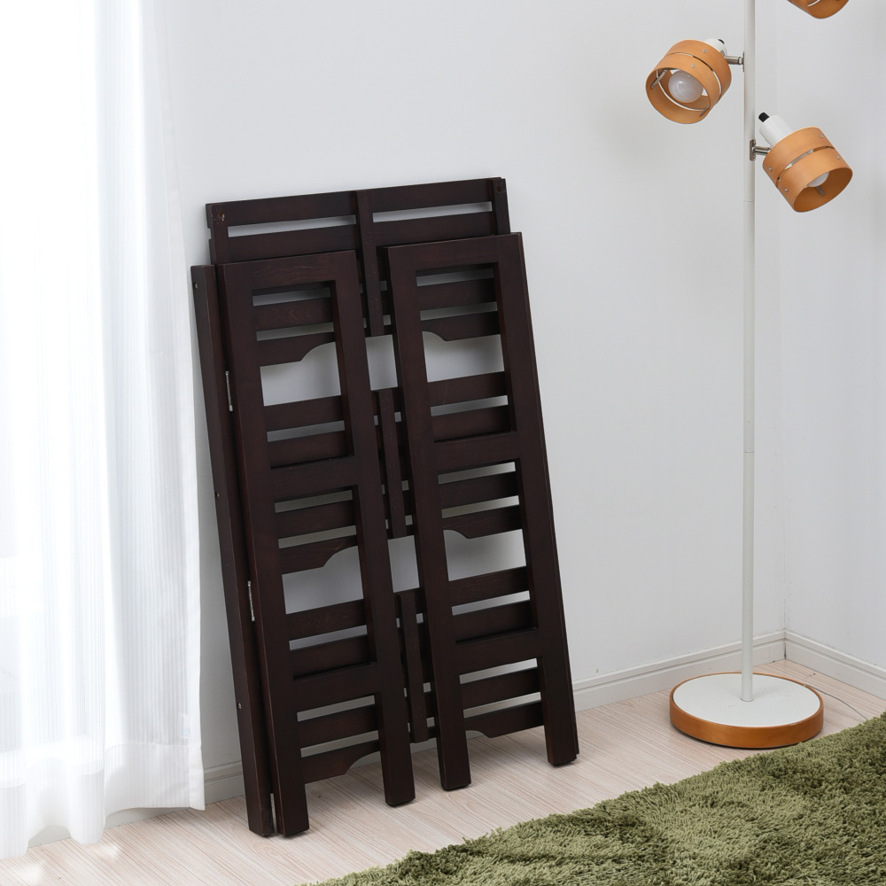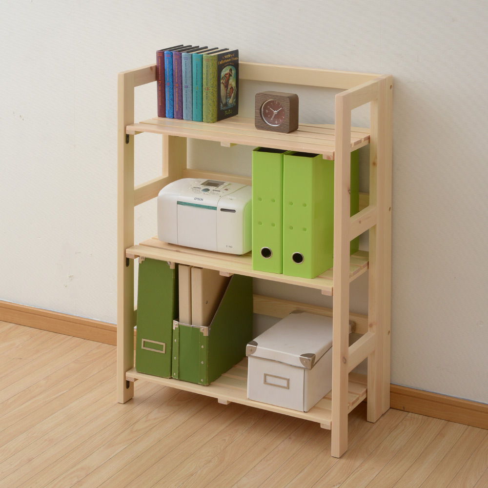 必要なときだけさっと広げて使える、折りたたみ式の木製ラックです。天然木パイン材ならではのぬくもりと、空間になじむシンプルなデザインが魅力。箱から出して組み立て不要で、折りたたんだ状態から広げるだけで設置できます。使わないときはコンパクトに畳んで省スペースに収まり、リビングやデスク周りの整理整頓に活躍します。