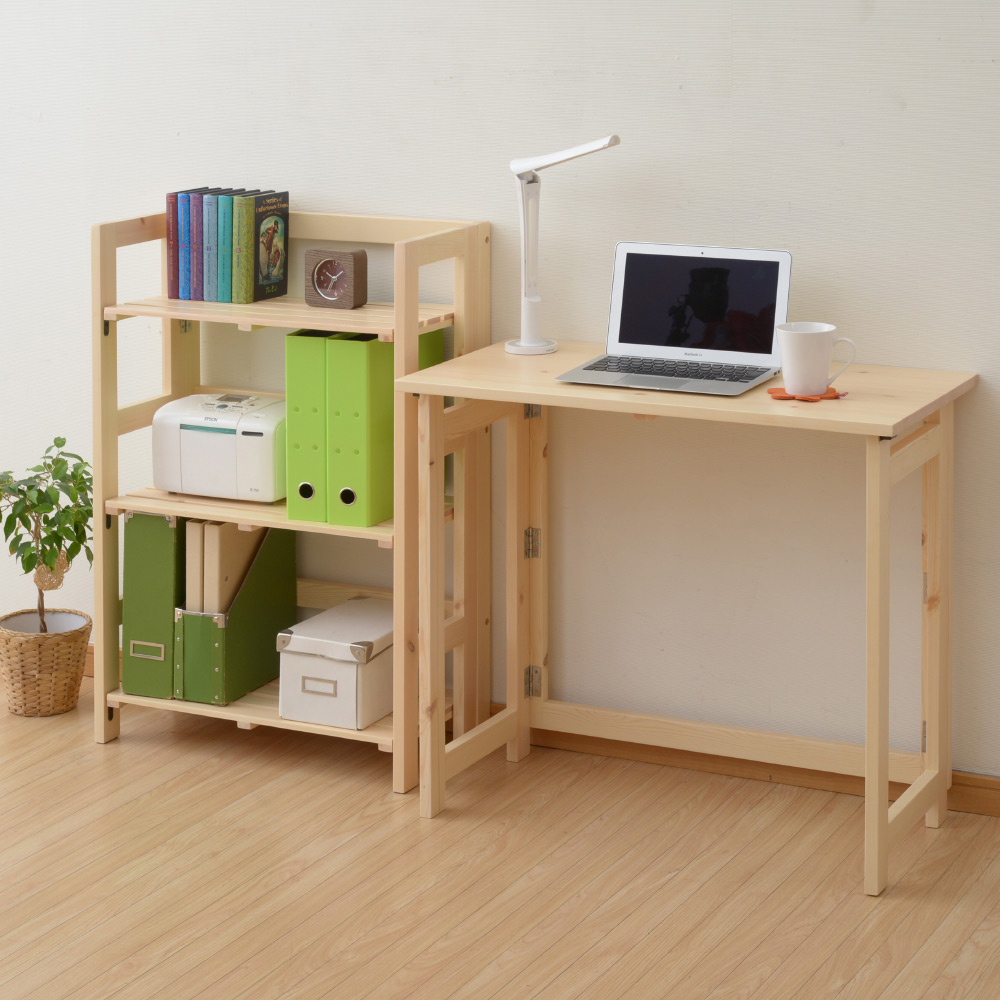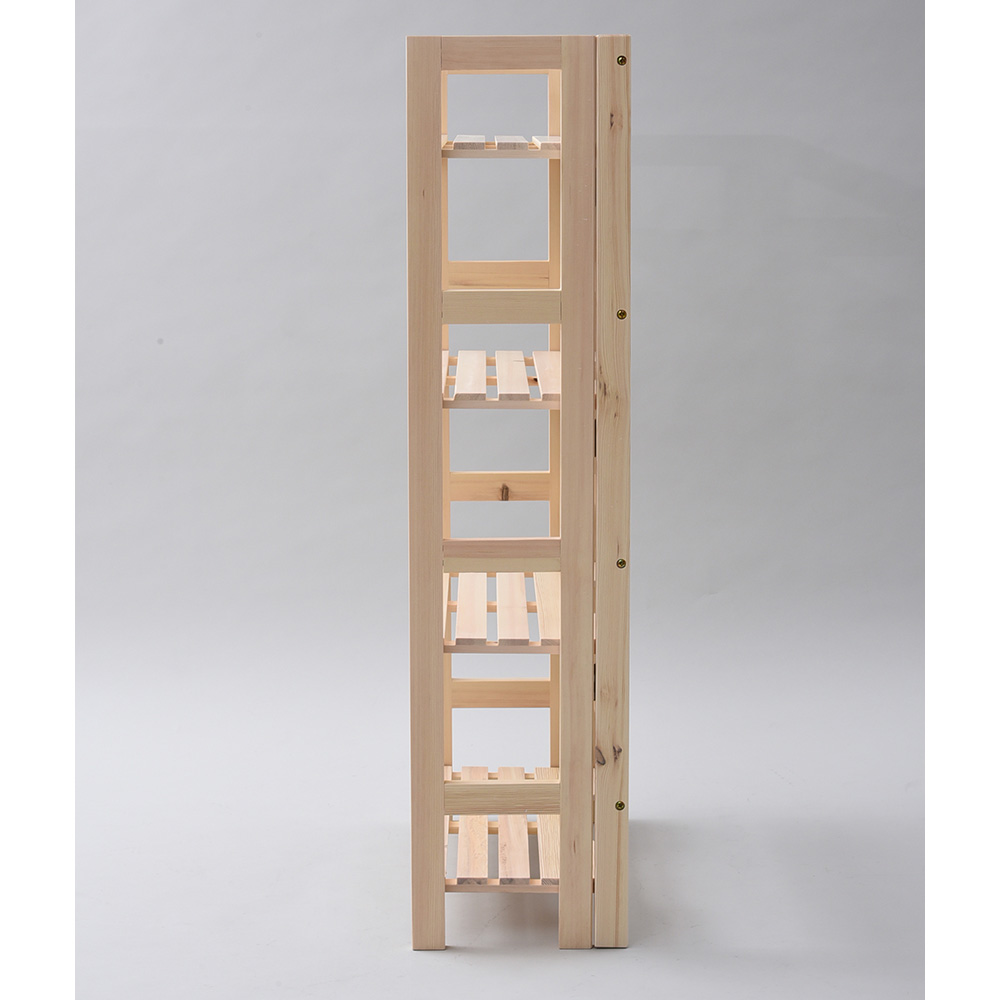 必要なときだけさっと広げて使える、折りたたみ式の木製ラックです。天然木パイン材ならではのぬくもりと、空間になじむシンプルなデザインが魅力。箱から出して組み立て不要で、折りたたんだ状態から広げるだけで設置できます。使わないときはコンパクトに畳んで省スペースに収まり、リビングやデスク周りの整理整頓に活躍します。