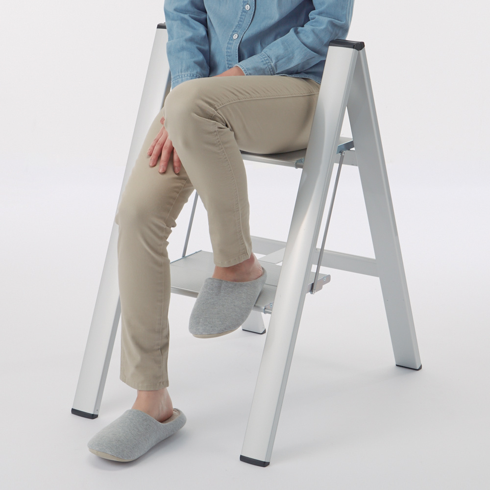 座れる脚立。限られたスペースを生かす工夫、使い勝手のよさを究めた仕様、さらに、インテリアとしてのデザイン性にこだわりました。