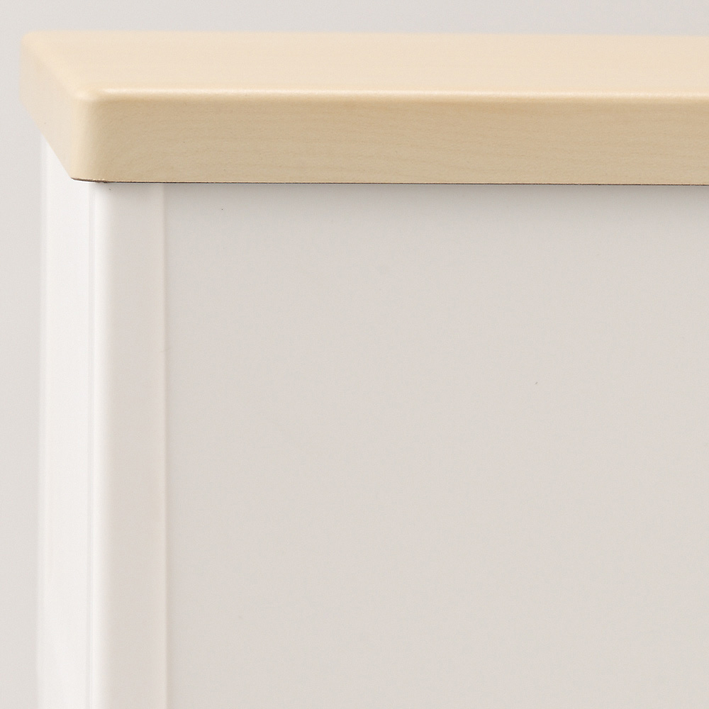 ■前面…スチロール樹脂、天板…MDF、引き出し・外枠・ロック・ローラー…ポリプロピレン