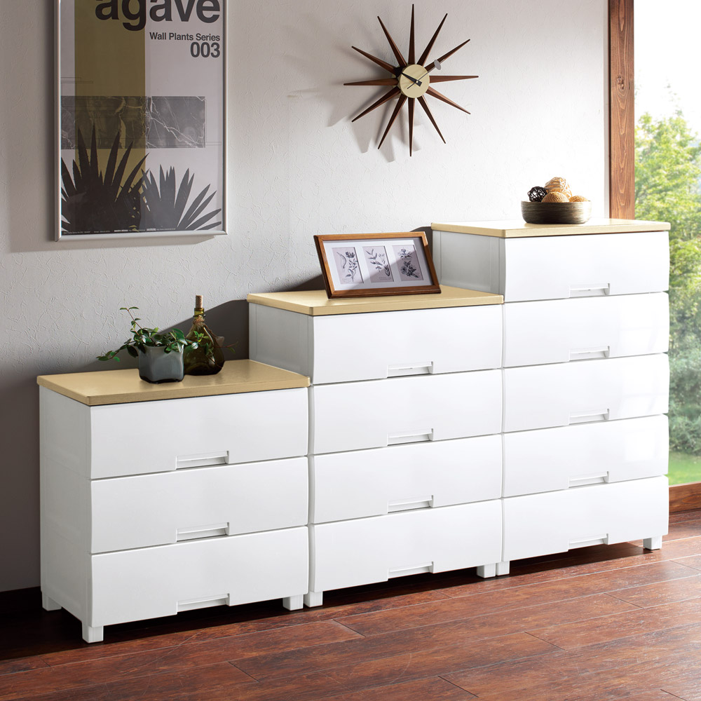 フィッツケースの収納力を備え、さらにデザインを洗練させた衣類収納タンスです。
