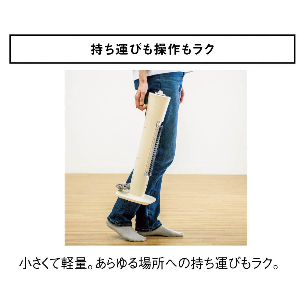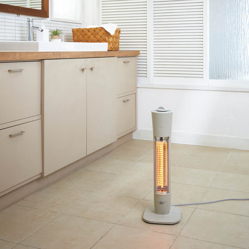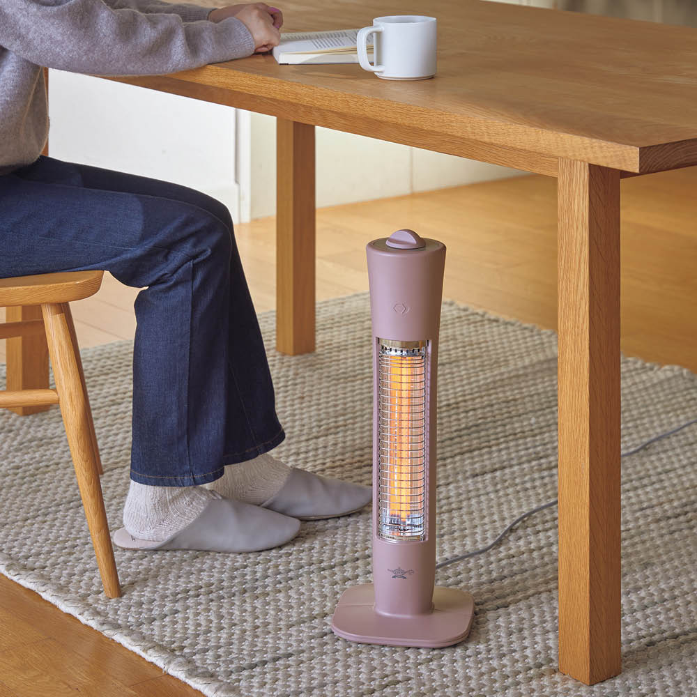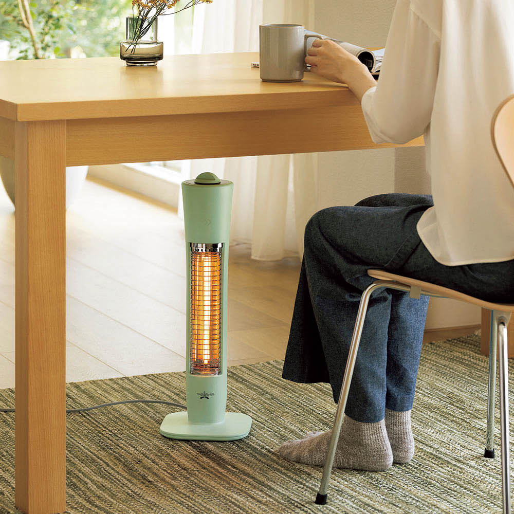 スリムでコンパクトなタワー型はスペースを取らず、狭い場所にも置けるのが魅力。キッチンや洗面所、勉強机の下など、これまで暖房器具を置きづらかった場所でも活躍します。