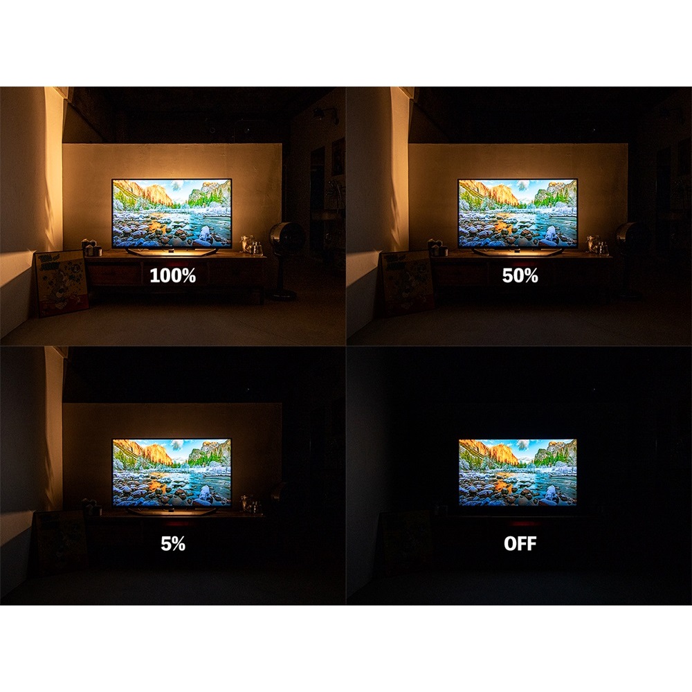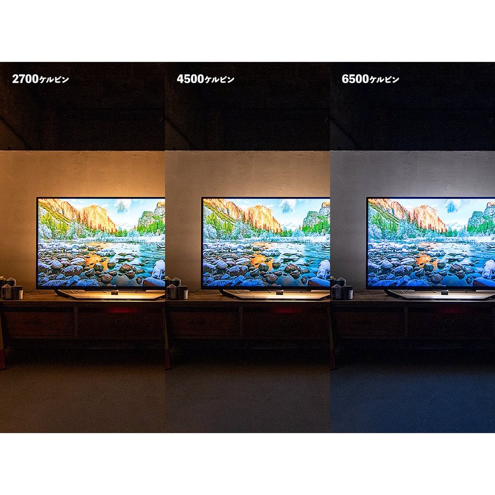 テレビの背面を照らすと画面と壁との明度差が少なくなる為、目の負担が減り長時間画面を見ていても疲れの軽減を期待できます。映画やスポーツ観戦で画面に集中したいときは画面に映り込む天井照明を消し、テレビ裏を照らせば快適に観ることができます。