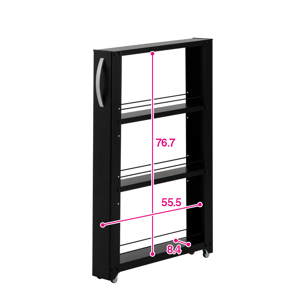 ●キャスター&取っ手付きだからキッチンのすき間からサッと引き出すだけ。普段はすき間に隠せるため、生活感を見せずにスマートに収納できます。