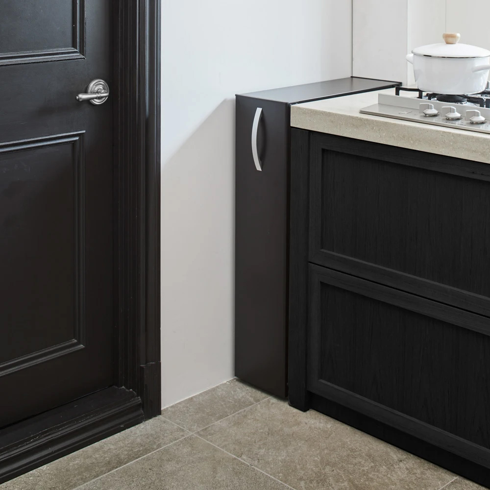 使用イメージ(イ)ブラック キッチンカウンター横に並べて使いやすいロータイプ。熱に強いので、コンロ脇ではお鍋のちょい置きスペースとしても活躍します。 ※写真は別売りのロータイプ幅20cmです。