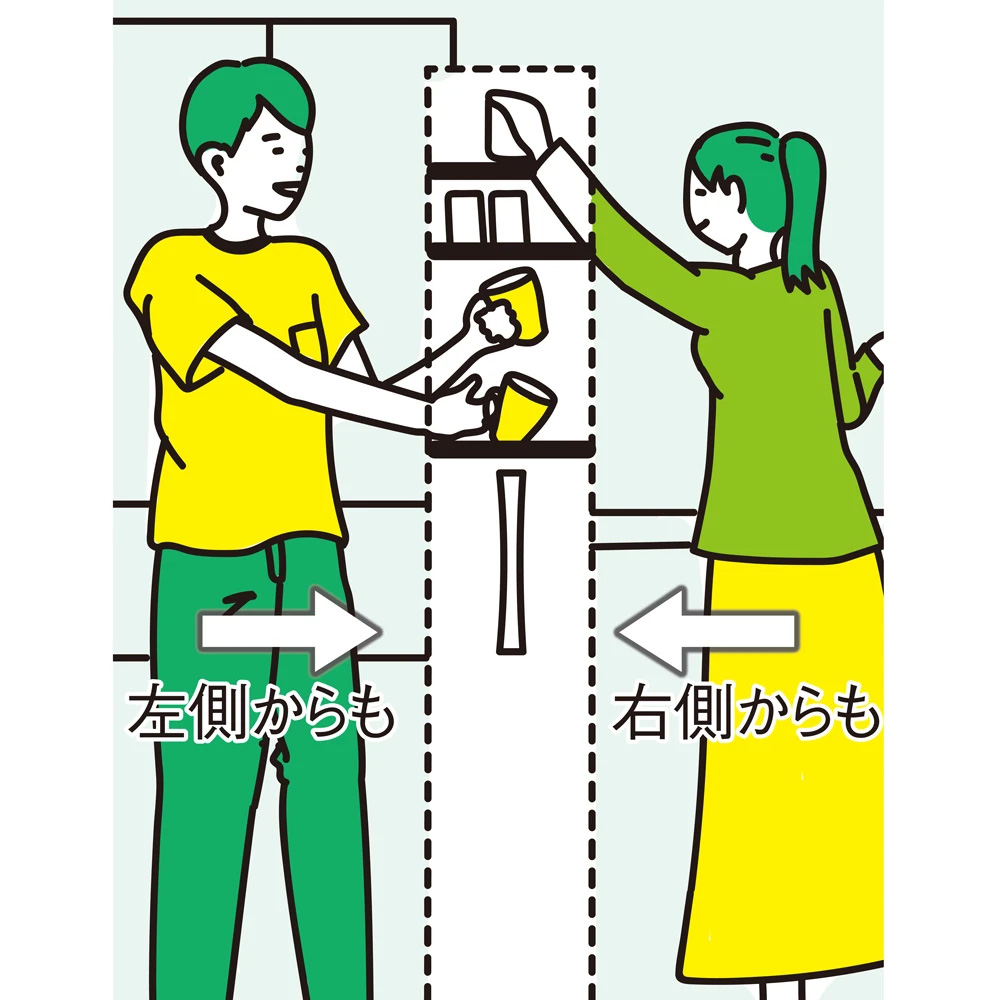 ●棚の左右から取り出せるオープン仕様なので、収納物が見やすく整理できます。
