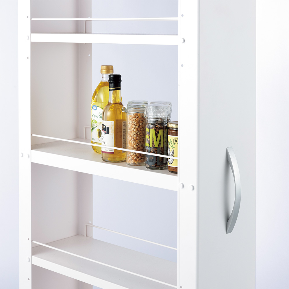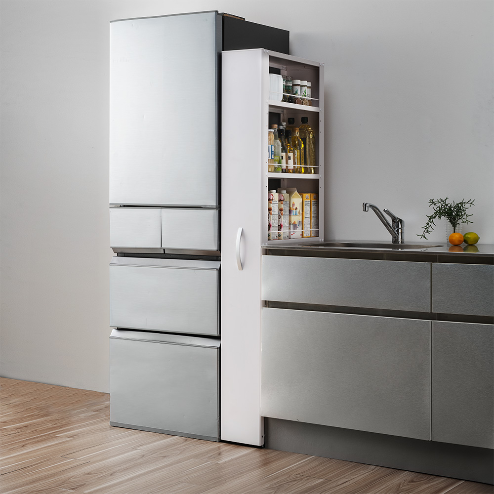 ●幅は10cm、15cm、20cmの3タイプから選べ、どの家のキッチンにもある半端なすき間が、収納スペースに生まれ変わります。・幅10cmタイプはこまごました調味料の整理整頓にも便利。細長い瓶や小さなストックを見やすく管理できます。
