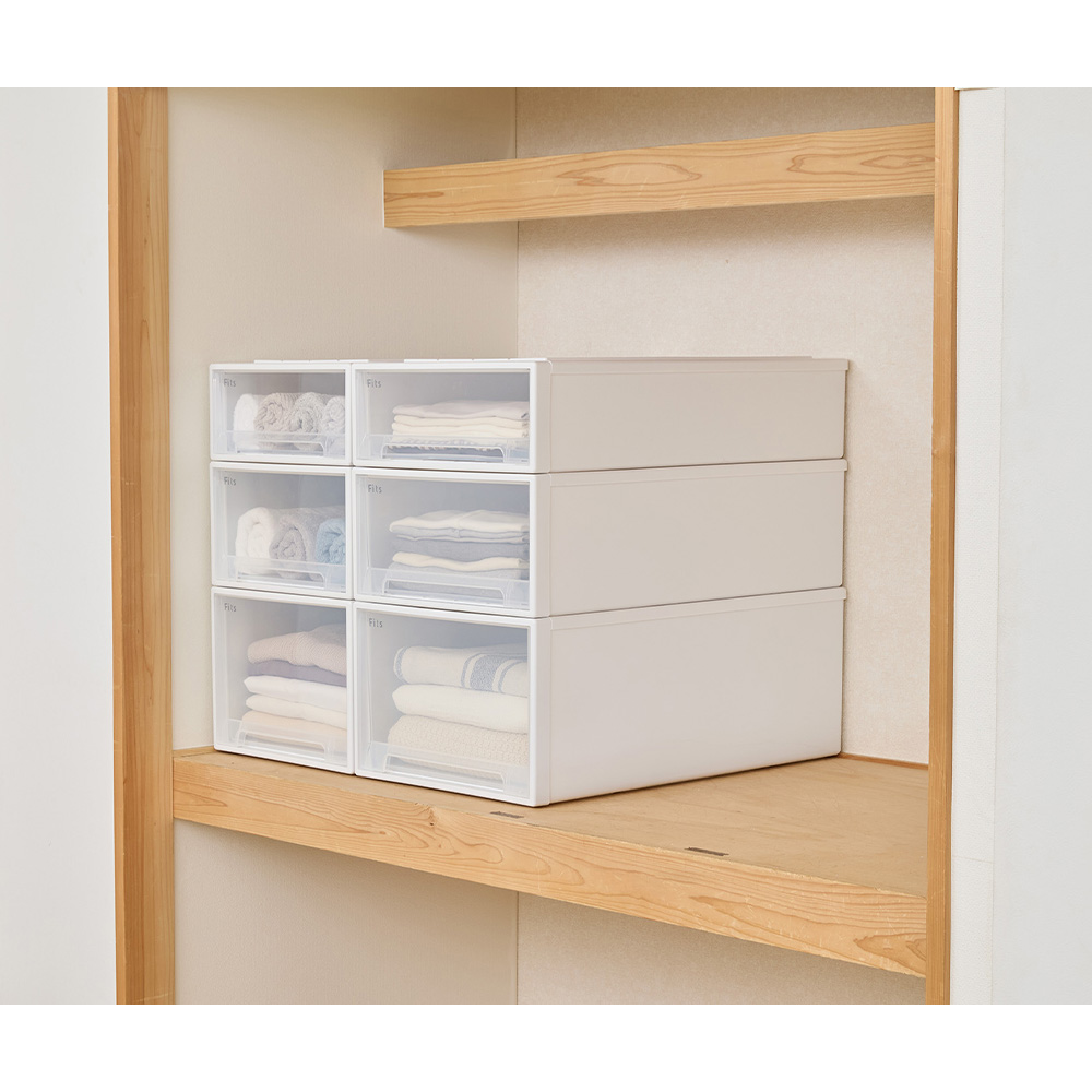 衣装ケースの代名詞として長年愛される収納の定番「フィッツ」。dinosなら店頭から持ち帰る大変な手間は不要!欲しいサイズがすぐに見つかり、2個組で家まで届きます。引っ越しや模様替えの際に、1人でも手軽に組み直しできるフレキシビリティも魅力。ラクして便利な収納体験、フィッツケースで始めませんか。スペースと収納したいものに合わせて組み合わせできます