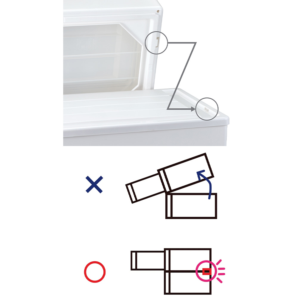 • 【前倒れ防止機能付き】積み重ねた状態で引出しを引いた時に、ケース後部が浮き上がり前方へ倒れてしまうことを防ぎます。
