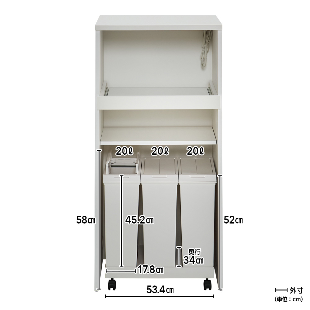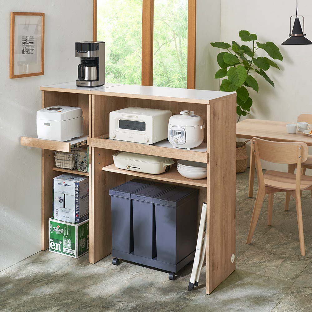 (ア)ホワイト ※ゴミ箱上の収納庫は別売りの「間仕切り家電収納庫」を使用しています。