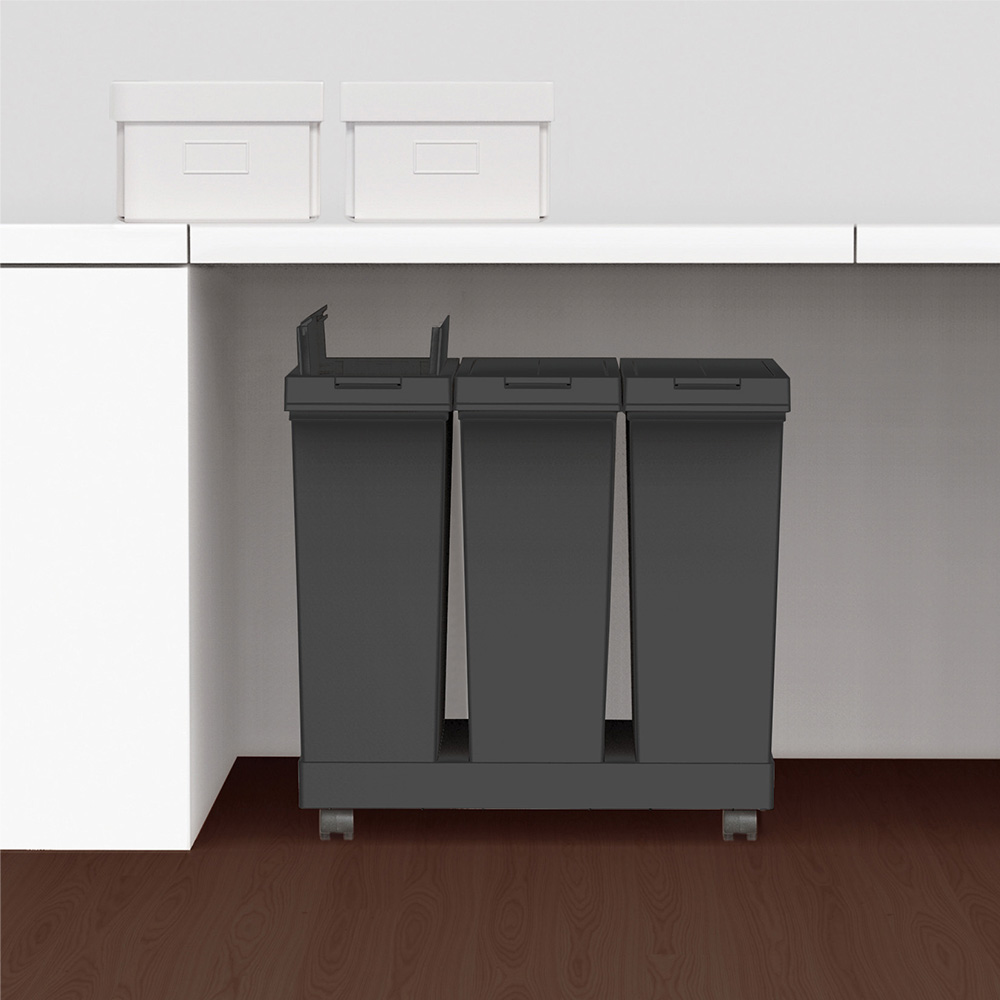 棚下に置ける 3分別キャスター付きダストボックス 60リットル キッチン 分別 ダストボックス 630525