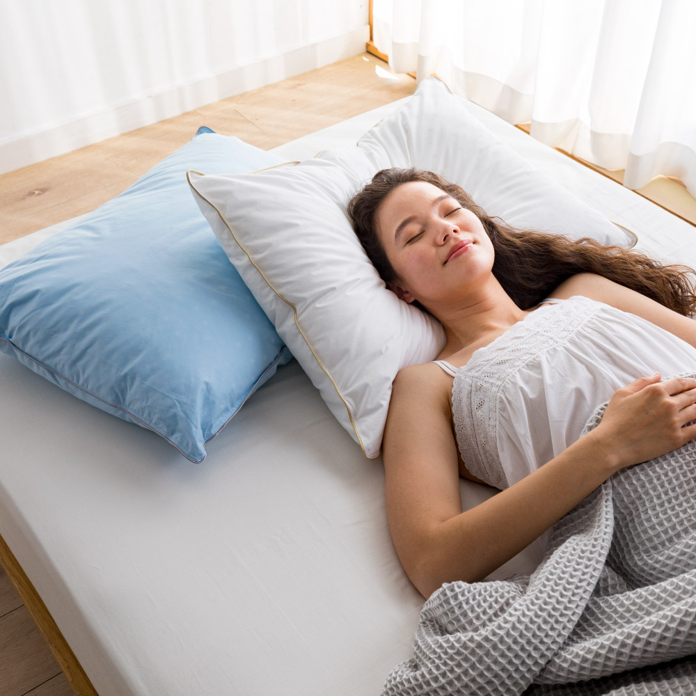 海外のホテルの枕のように2個を重ねてつかうことで、頭から肩までサポートするなど、好みの寝心地に整えることができます。