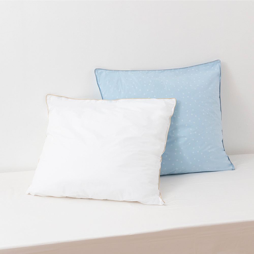 枕本体の色:ホワイト、パウダーブルーの2配色。