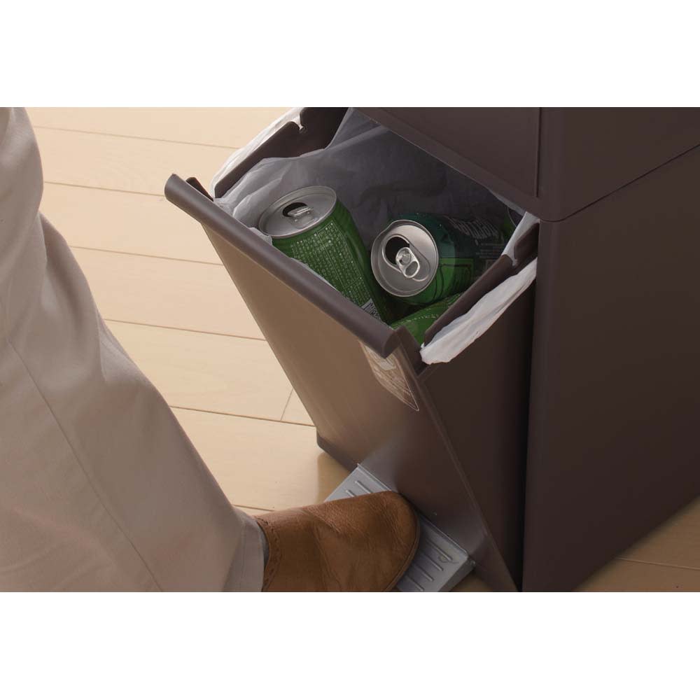 最下段は足で踏んでフタが開閉するペダル式です。手を使わずにゴミが捨てられるので、調理中にも便利です。