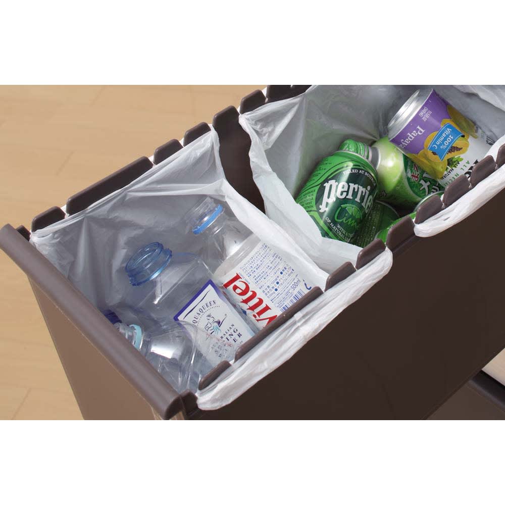 引き出しの内部はレジ袋が掛けられて分別できます。