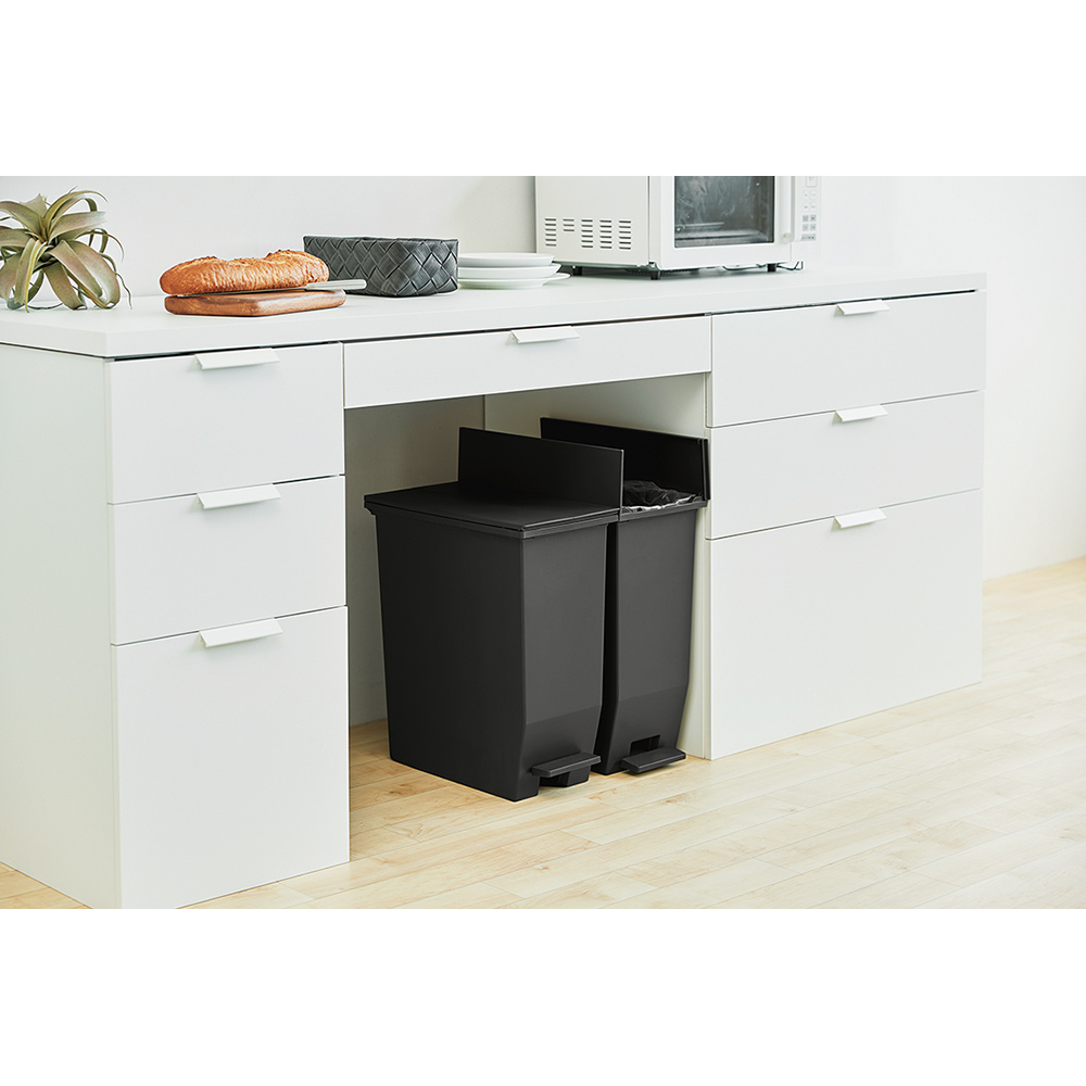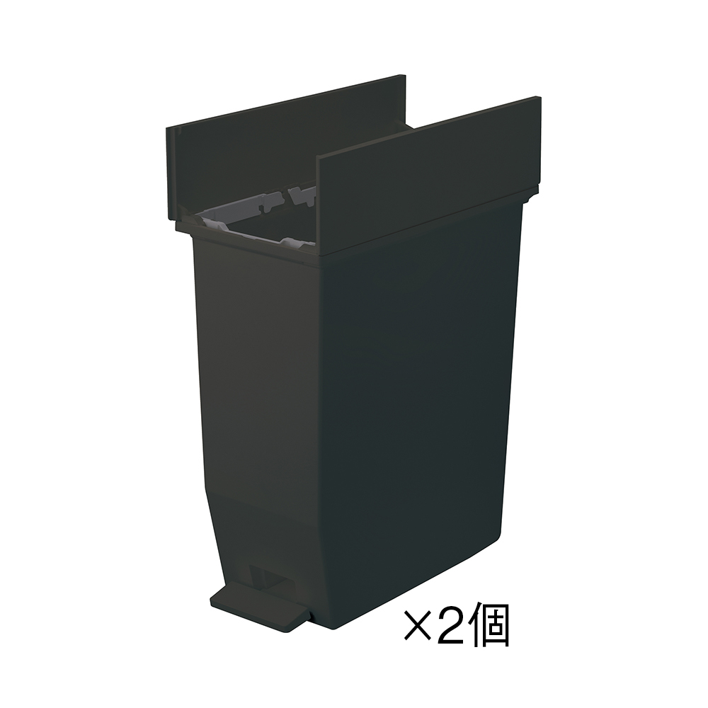 コーディネート例(イ)ブラック 棚下に置けて、手を触れずにゴミ捨てできる抗菌加工のダストボックス。 ※お届けは写真左の35リットル・2個組みタイプです。