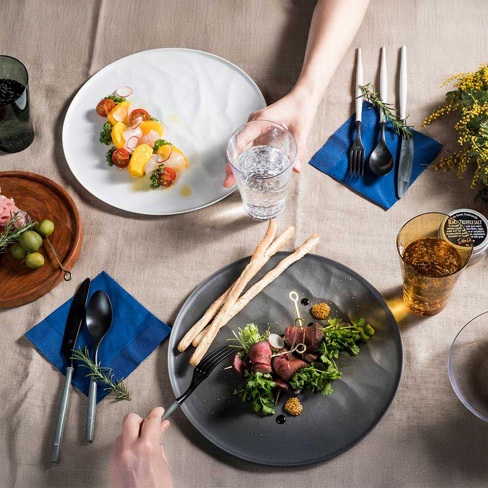 非常に丈夫で傷もつきにくいため、和食・洋食・中華を含めた家庭でのご使用はもちろん、ピクニックやキャンプ、BBQでも活躍します。どんなシーンもおしゃれに彩ります。
