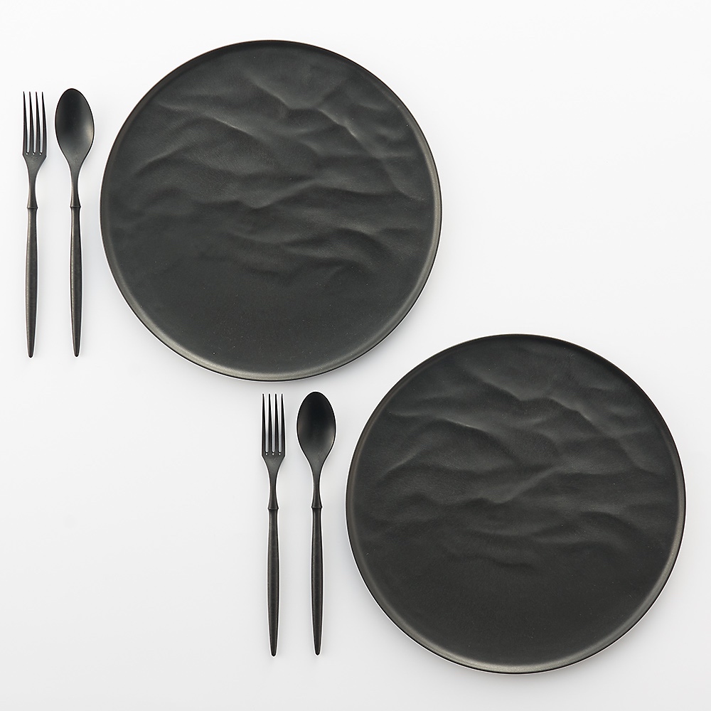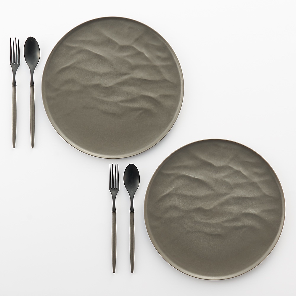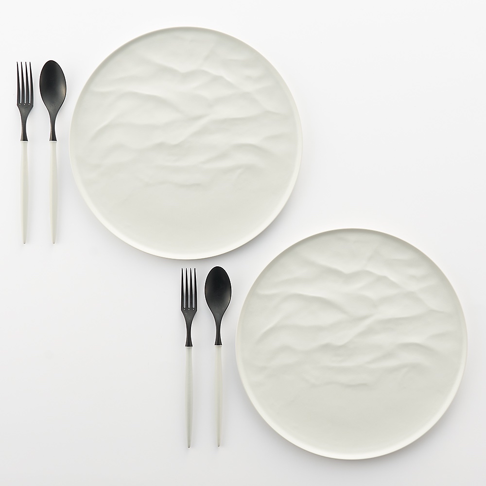 ARAS ウェーブ 大皿27.5cm 割れないお皿 特典付きの同色ペアセット(同色お皿2枚+同色フォーク&スプーン2セット+お箸の特典付き) エイラス 601804