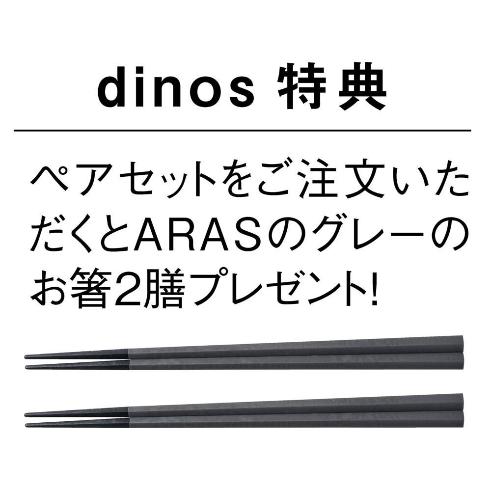 五角型で持ち手が手に馴染む、テーブルの上でも転がりにくいARASの箸を2膳プレゼント!非常に細い先端で口に入れた時の存在感が少なく、料理を存分に楽しめます。