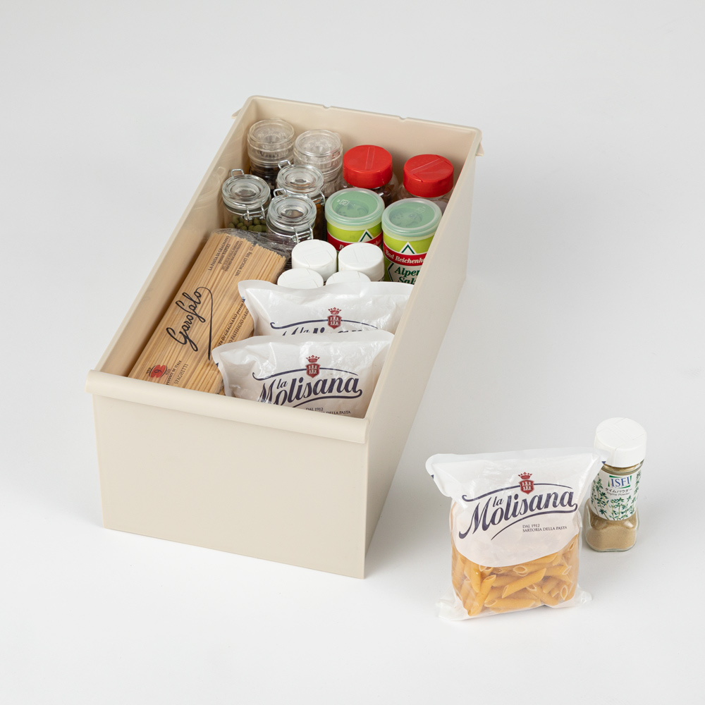 • 1~3段目の引き出しは、乾麺やスパイスなどが入る高さ設計です。 ※写真の引き出しは別売りの幅25.5cmタイプ(イ)ベージュです。お届けする商品は幅14cmタイプになります。