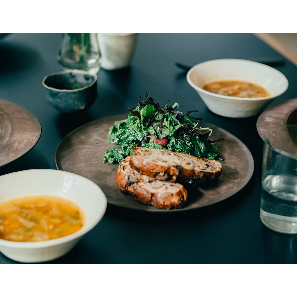 素材はポリプロピレンと廃材にされる自然由来の杉皮原料を50%含ませて成形されています。テーブルの上で自然を感じるオーガニックな料理や、アウトドアでも雰囲気を上げてくれるお皿です。